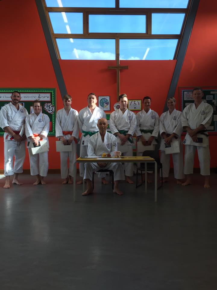 Successful Shikukai Chelmsford students at a grading in Woodham Walter with Sugasawa Sensei.