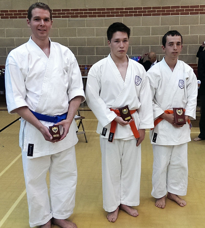 2014 – Andrew Stokes of Shikukai Chelmsford (centre) second place junior kata event at the Shikukai National Championships.