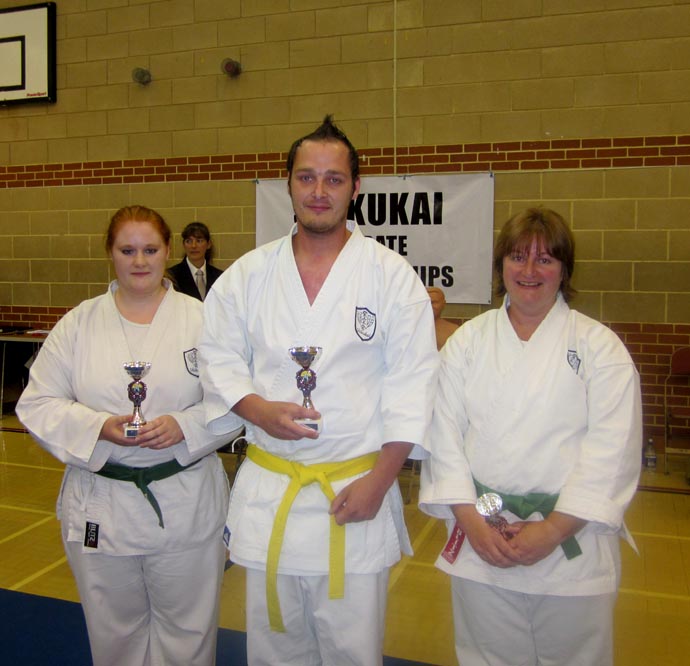 2011 Shikukai Championships, Swindon. L, Stacey Revill 2nd, centre Craig Walton 1st, R Sandra Revill 3rd. Mixed junior kata.