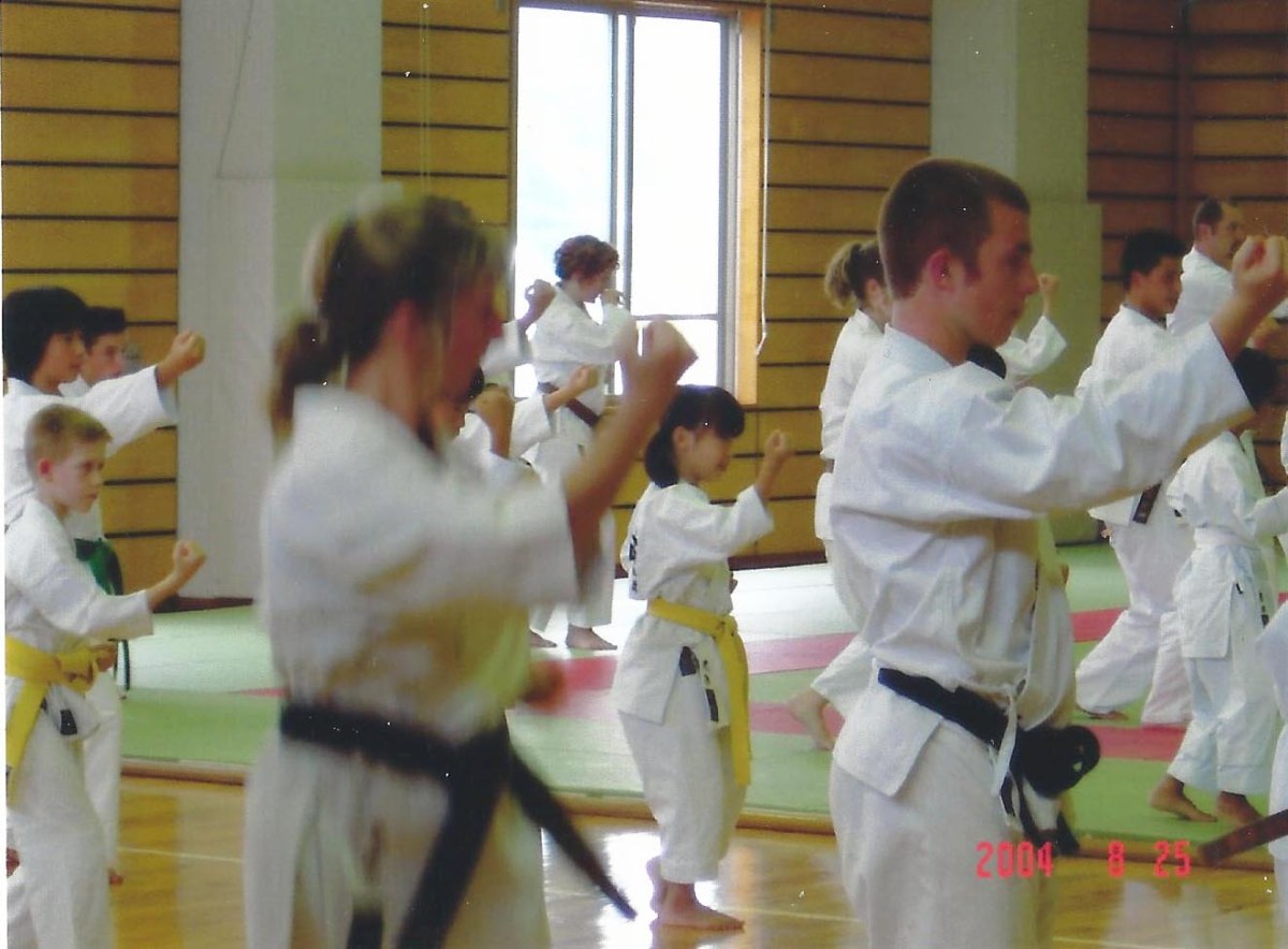 2004 – George Krethlow Shaw (far left) of Shikukai Chelmsford training in Hiroshima.